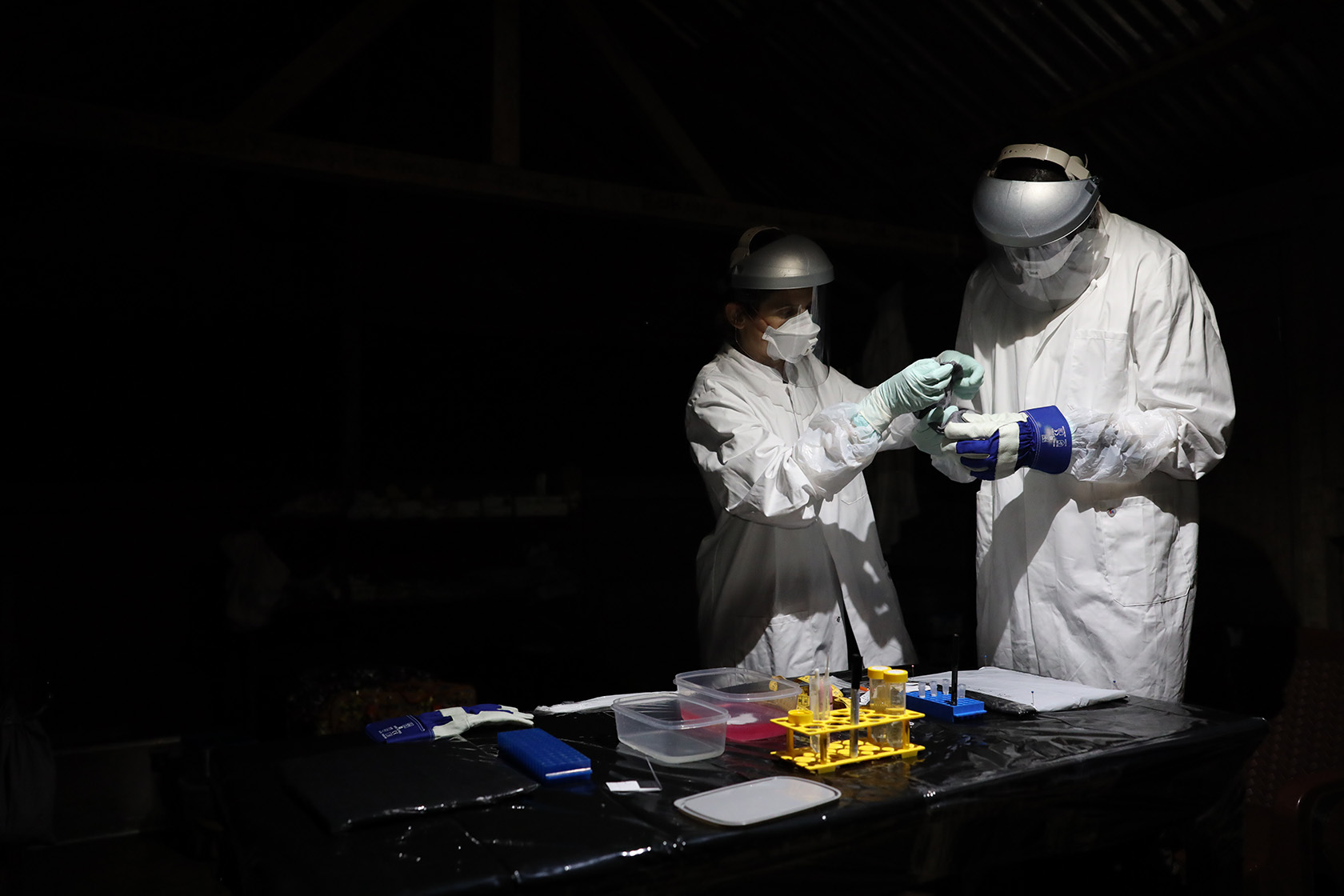 At the outset of the mission, the team met with representatives of several local communities – both indigenous and non-indigenous – to present the project and jointly identify suitable sites for small mammal sampling, ranging from dense rainforest to village peripheries and residential areas. Using live traps set at these locations, the researchers captured more than 200 rodents and bats – including mice, giant pouched rats, and other rodent species relevant to disease transmission, as well as various bat species – and collected minimally invasive samples, such as swabs and small blood droplets. In addition, blowflies were collected at all sites as a complementary tool for pathogen detection.