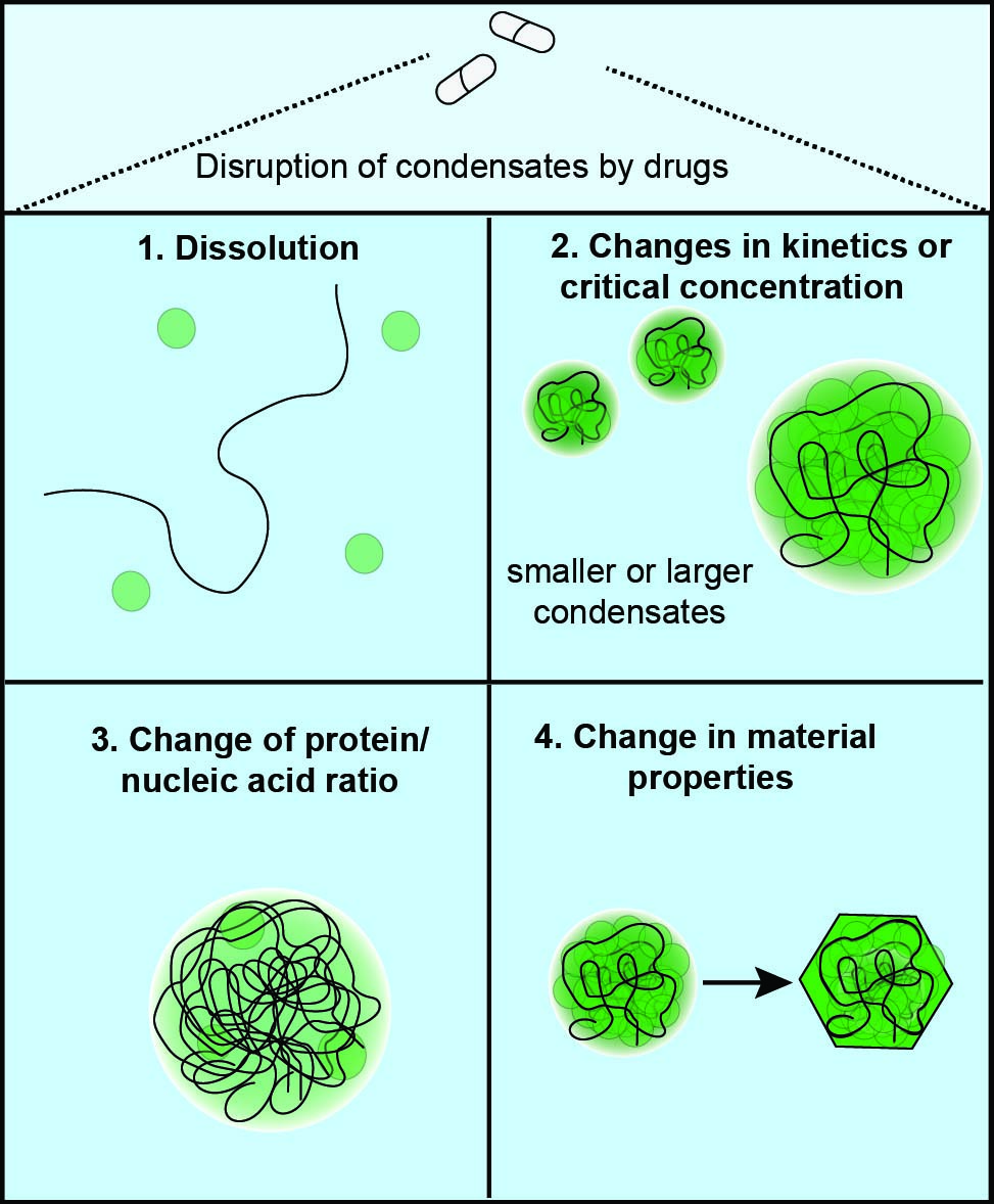 Furthermore, viruses exhibit remarkable mutation rates and adaptability, leading to resistance against existing antivirals. Consequently, novel therapeutic strategies are urgently needed. Addressing multi-component condensates, rather than individual drug targets, could thus be an effective way to reduce viral resistance to treatments, particularly when host condensates are involved.
